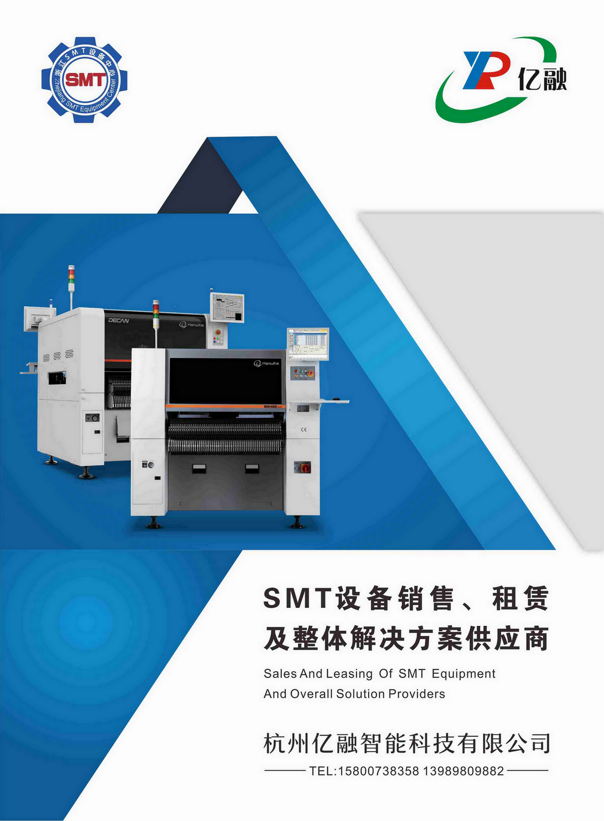 杭州億融智能科技有限公司坐落于杭州臨平經(jīng)濟(jì)開(kāi)發(fā)區(qū),是一家銷(xiāo)售、租憑全新AI/SMT設(shè)備、中古SMT設(shè)備買(mǎi)賣(mài)、電子產(chǎn)品加工的企業(yè),為客戶(hù)提供一星/韓華、雅馬哈、松下等品牌貼片機(jī),日東、勁拓、浩寶等品牌波峰焊、回流焊,及其他各類(lèi)SMT相關(guān)設(shè)備,和各設(shè)備的配件、維修、保養(yǎng)等服務(wù),并為客戶(hù)提供整套SMT生產(chǎn)線(xiàn)解決方案。